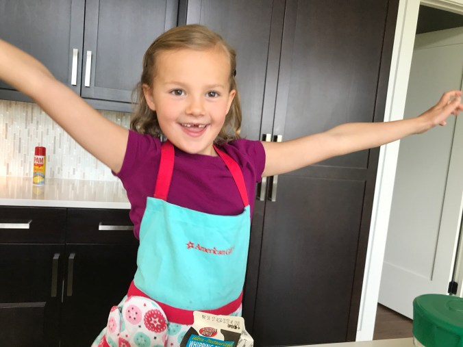 Today, we are blessed with a caring, intelligent, strong, opinioned little 7 1/2 year old who is out to take on the world. She makes me smile every day. Posed below helping with Mother’s Day brunch preparation.